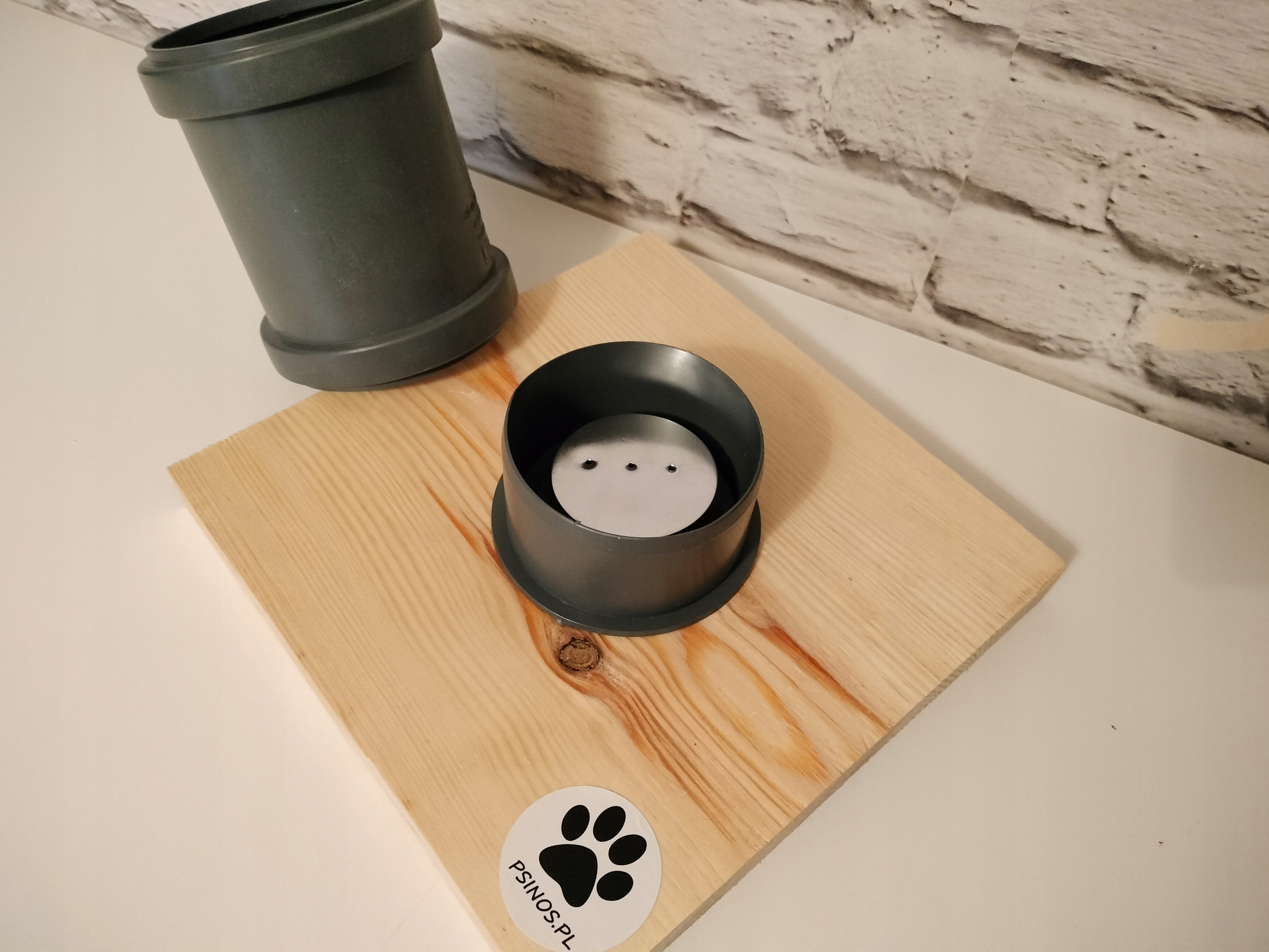- korek przykręcony do deski 20/20/2 cm wraz z mufą śr. 7,5 cm wysokość 11 cm i puszką 50/16 mm