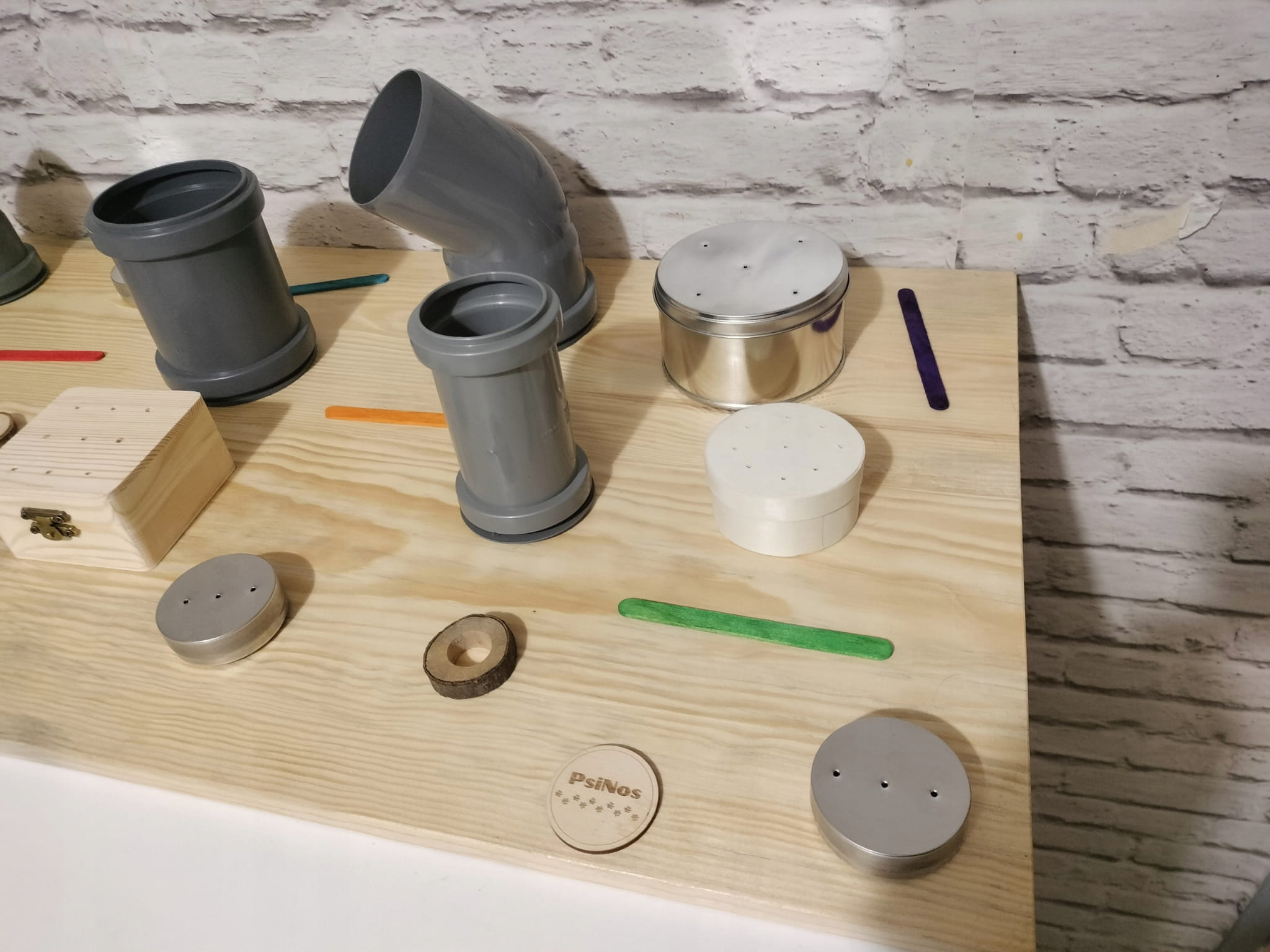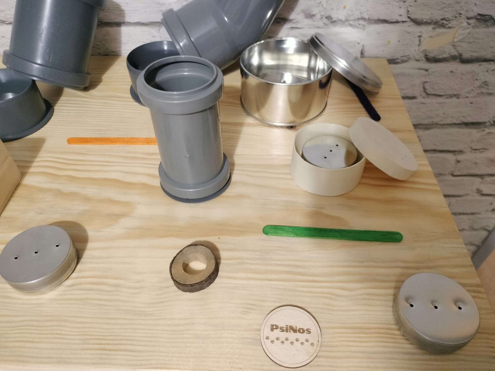 Produkt zawiera 28 elementów, w tym 21 elementów przytwierdzonych do powierzchni oraz 6 wymiennych puszek, które umożliwiają różnorodne ćwiczenia i wyzwania. Dodatkowo, 1 drewniany patyk z magnesem pozwala na bezdotykowe wyciąganie puszek z zapachami.