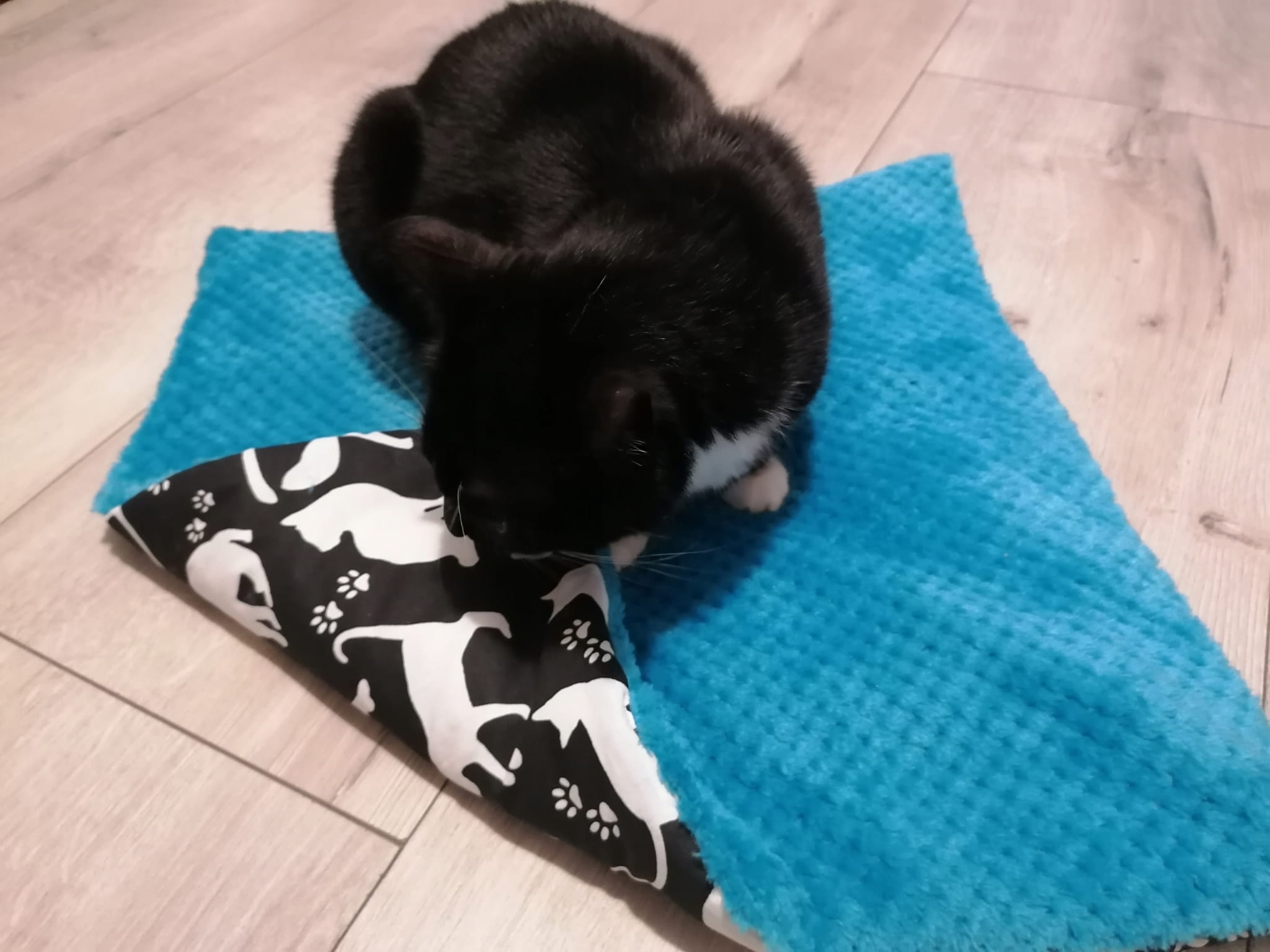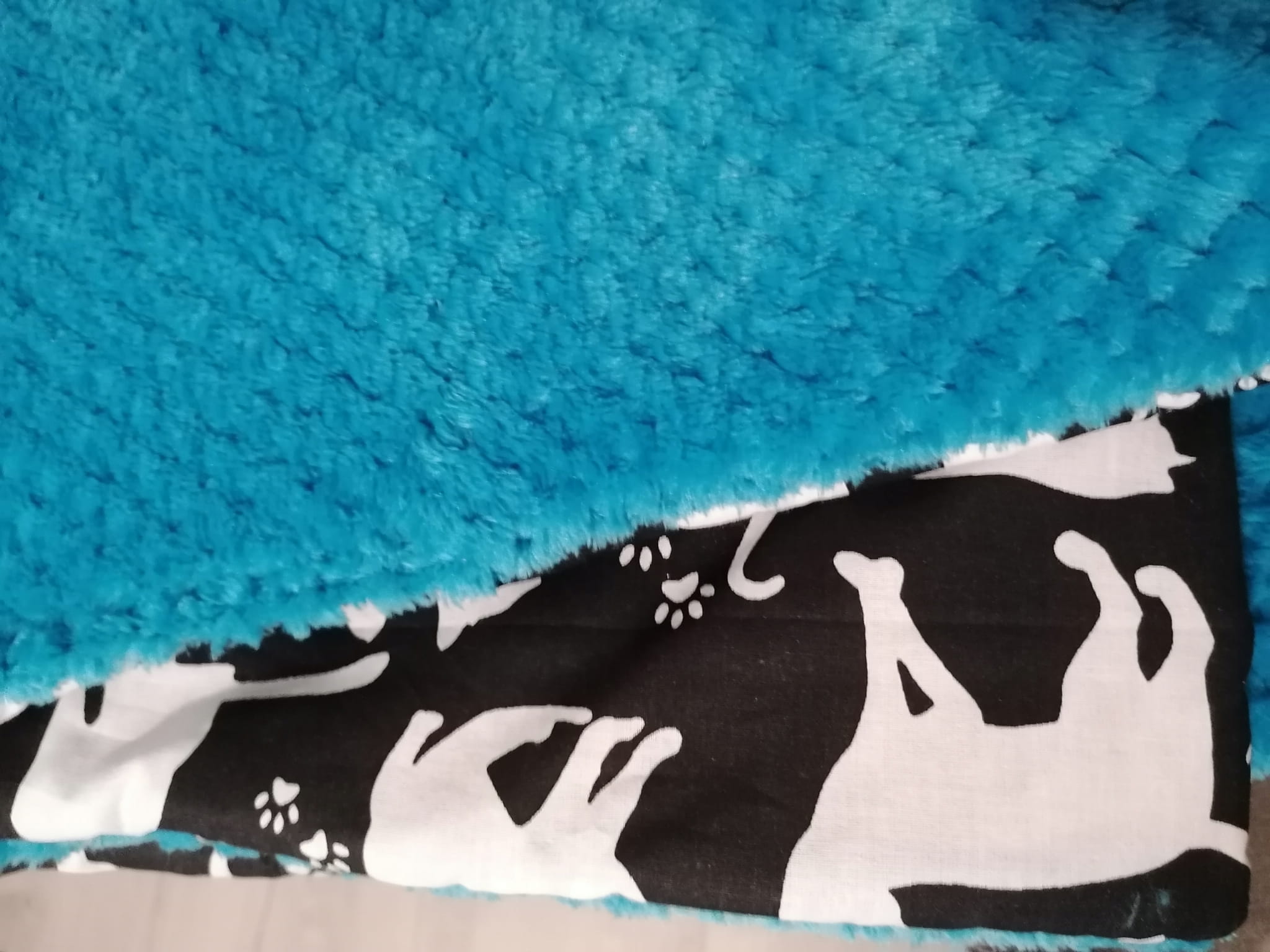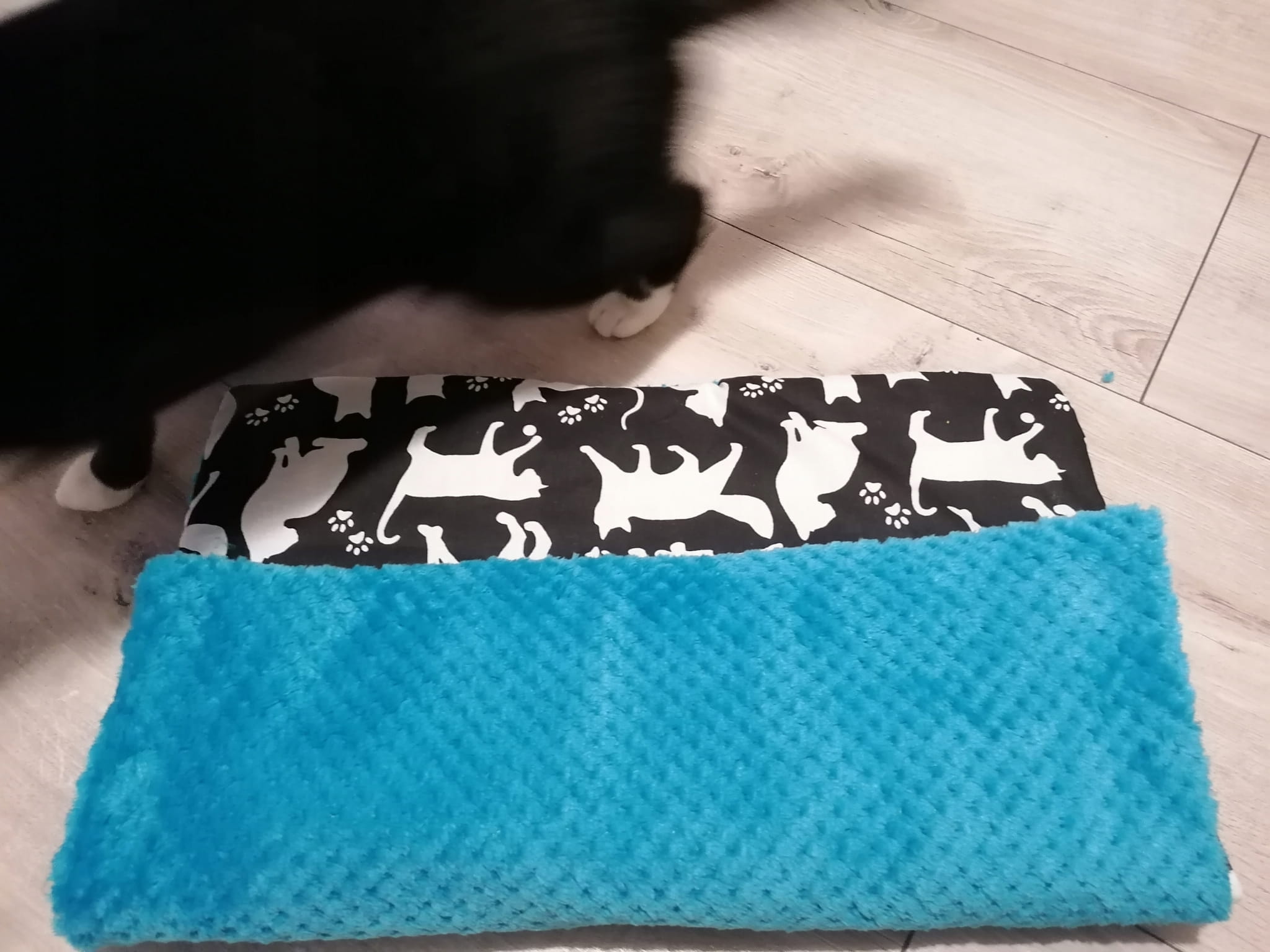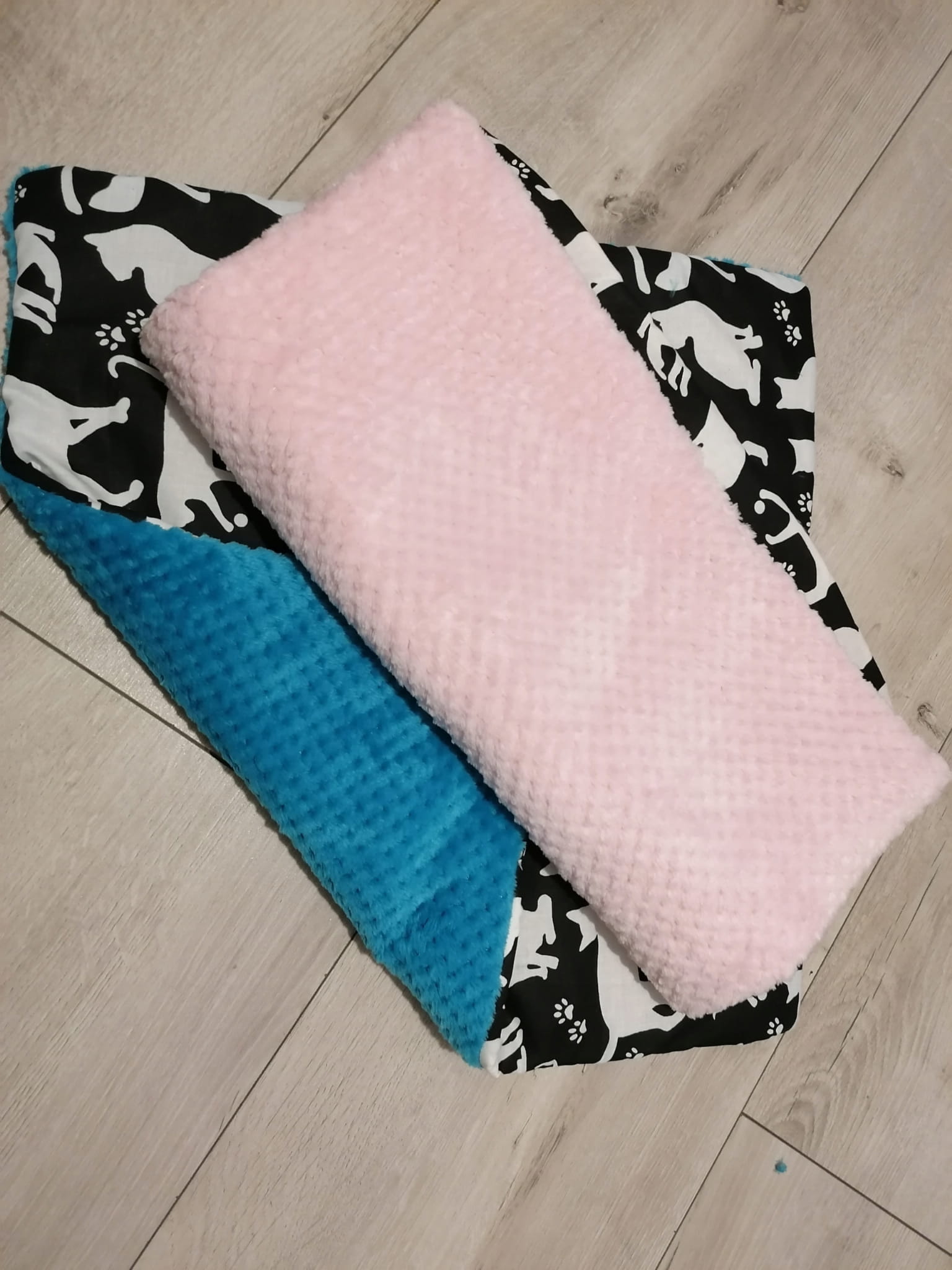 z jednej strony materiał bawełniany z pięknym kocim motywem, a z drugiej bardzooooo miękki materiał polar minky plush